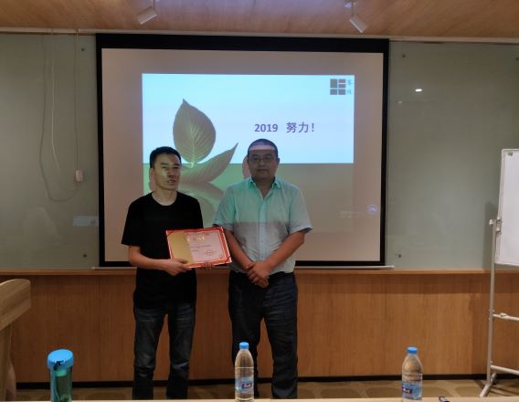 會議第三項,最為緊張、激動人心的時刻——頒獎環節,我公司對最佳業績部門進行了表彰嘉獎,國土規劃部在上半年中的工作業績突出,榮獲團隊“最佳業績獎”,由總經理于榮波先生進行頒獎,對國土規劃部表示祝賀,同時也對其他部門提出要求,在2019下半年中希望各個部門能夠快馬加鞭,勇創佳績。