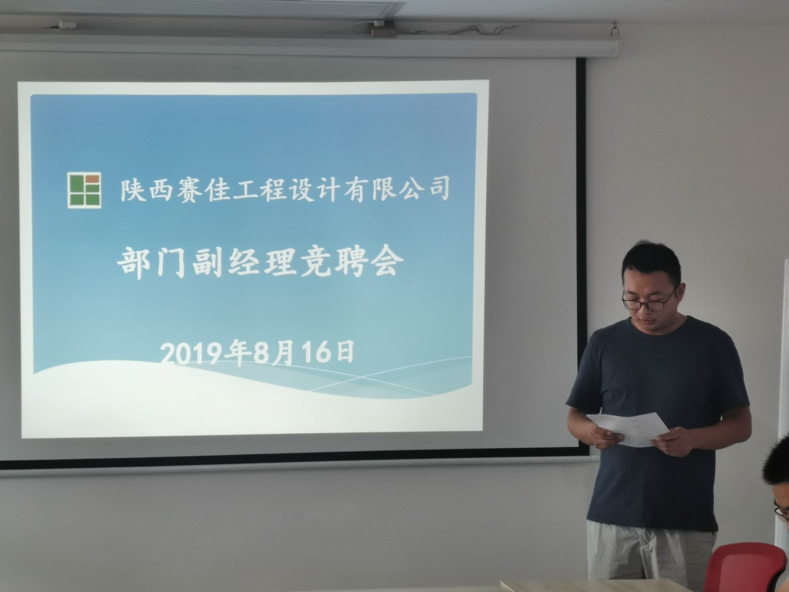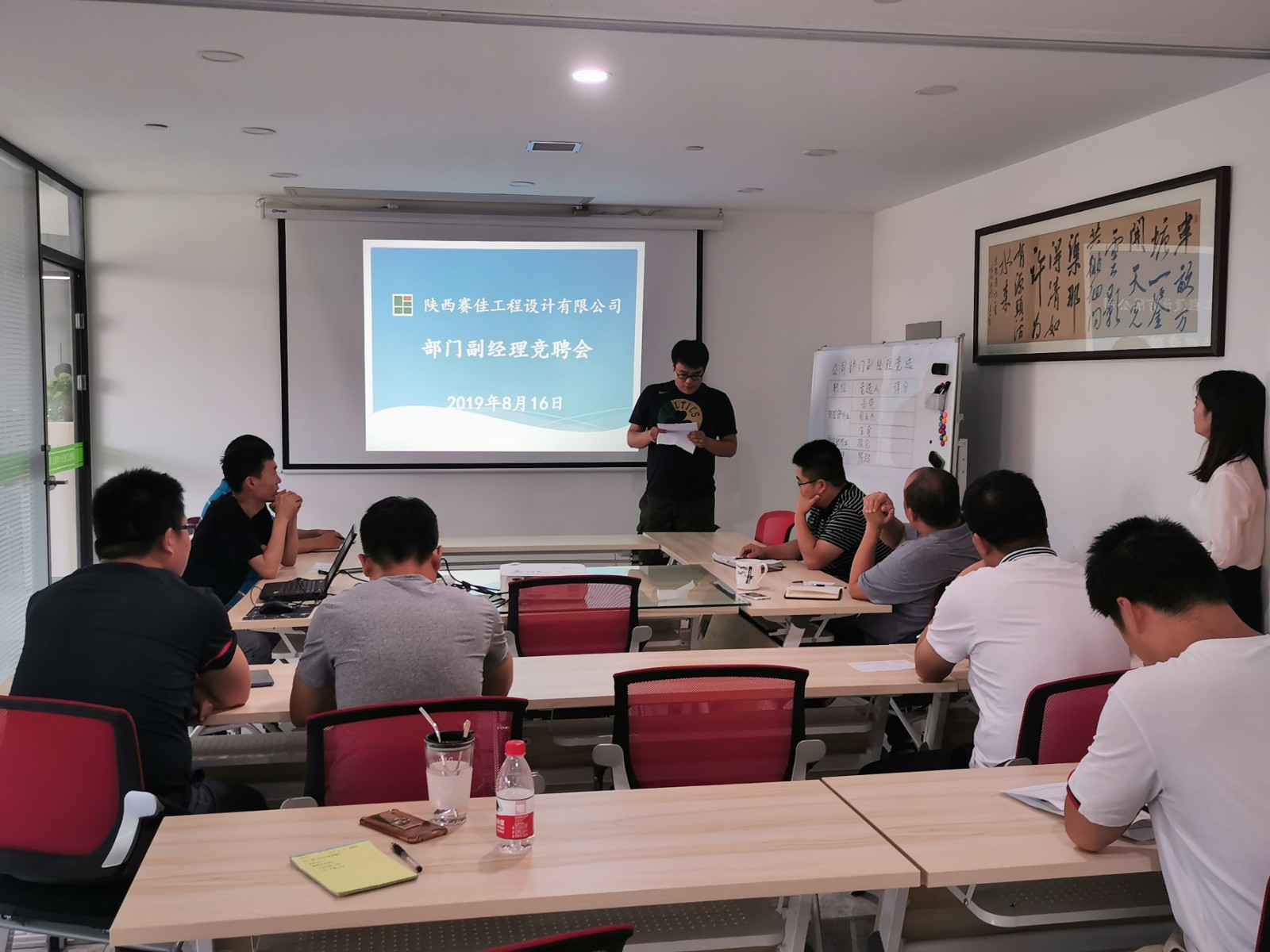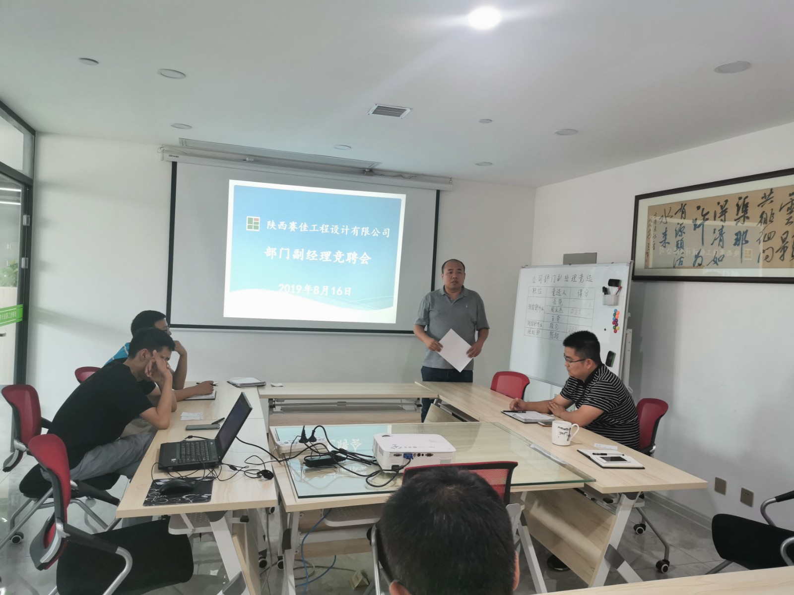 2019年8月16日中午,陜西賽佳在公司會議室召開了國土規劃部和測繪工程部部門副經理競聘會議。行政副總經理、技術副總經理、各部門經理及競聘人員參加了本次會議,會議由行政部主持。